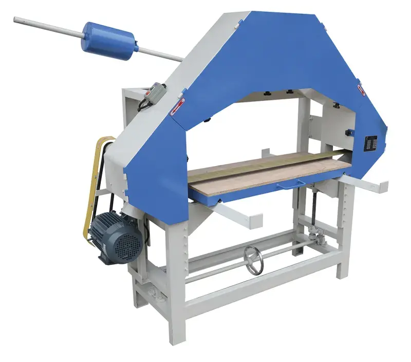 Máy mài bề mặt sử dụng đai mài, thiết kế máy giúp người vận hành dễ dàng thay thế đai mài trong quá trình sử dụng. Bề mặt đai nhám và bề mặt bàn song song đảm bảo đánh đều phôi, có thể sử dụng dụng cụ đè đai nhám đi kèm để mài cục bộ vị trí trên phôi. Bàn làm việc được tích hợp cơ cấu nâng hạ bằng trục vít me, giúp thay đổi chiều bàn làm việc để phù hợp với phôi mài. Mặt bàn sử dụng gỗ tấm giúp chống trầy xước bề mặt phôi.